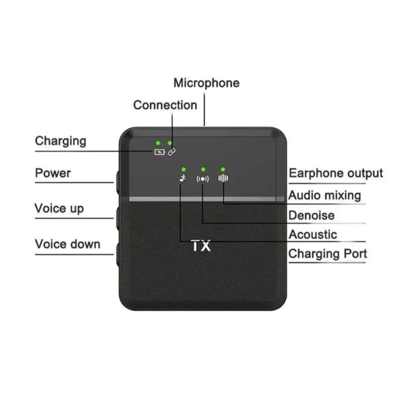 گیرنده دارای سه سری می باشد که به تایپ سی و لایتنینگ (آیفون ) و AUX قابل اتصال می باشد . پس یعنی این میکروفون قابلیت اتصال به تمام گوشی های آیفون و تمام گوشی های اندرویدی و کارت صدا و آمپیلی فایر را دارد . همچنین این میکروفون قابلیت Real time monitoring می باشد؛ یعنی وقتی گیرنده این میکروفون را به گوشی خود متصل می کنید و در حال فیلم برداری یا ضبط صدا هستید ؛ می توانید با اتصال یک هدفون به گیرنده آن صدای درحال ضبط را به صورت زنده مانیتور کنید شکل ظاهری مربعی آن و همچنین کیفیت صدا برداری بسیار با کیفیت و همچنین قیمت مناسب و اقتصادی ؛ این میکروفون را به رقیبی قوی برای بزرگان این صنعت تبدیل کرده است.این میکروفون نویز محیط را کاهش می دهد و صدای خواننده را تقویت می نمایید و روی آن بهسازی انجام می دهد .